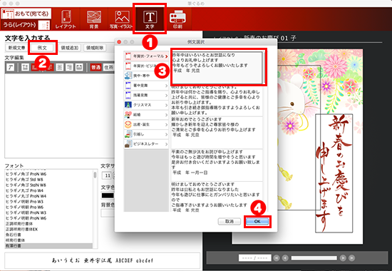 「筆ぐるめ 2018 for Mac」以前の製品で改元の影響を受ける以下の箇所については手動で対応をお願いいたします。