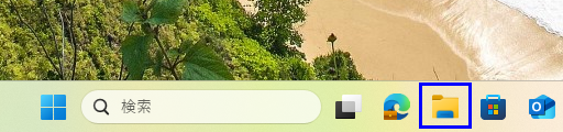 - ① ディスクをパソコンにセットしたら、タスクバーの「エクスプローラー」をクリックしてください。