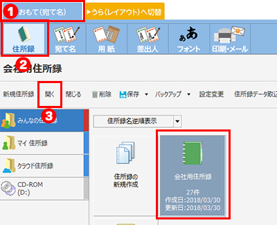 - ② 「住所録」ボタンをクリックしてください。