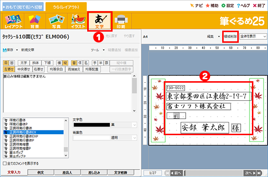- ① 「おもて(宛て名)」タブをクリックしてください。