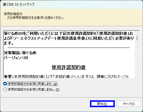 準備が整いましたら、筆ぐるめのインストールを始めます。