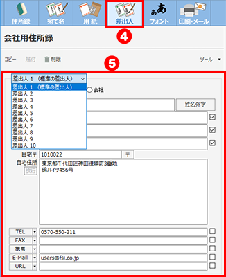 用紙画面で差出人有を選択した場合は、差出人情報を入力して、差出人指定を正しく設定する必要があります。
